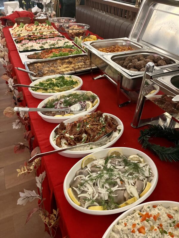 Oplev vores overdådige julebuffet med klassiske favoritter som; sild, laks, and, flæskesteg, frikadeller, ostebord, ris à lamande og meget mere! Når maden er nydt, sørger vores DJ for fest og god stemning resten af aftenen.